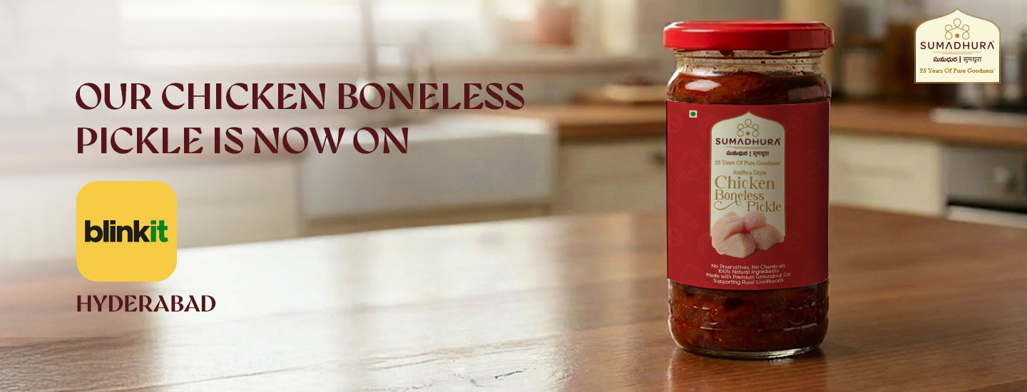 If you’re craving sweets, your spice buds are tingling, or you’re longing for authentic pickles and podis, look no further. Made with the traditional recipe of our Ammamma from Guntur, with the perfect blend of ingredients and served with love, we bring you Sumadhura Foods—your one-stop shop for sweets, snacks, pickles, and podis!