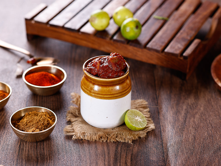 Made with the goodness of lemons and combining them with the essence of tradition, we bring to you our popular Lime pickle. It is made with fresh and juicy limes and is a tangy and spicy condiment that can be enjoyed as a side dish with any meal.